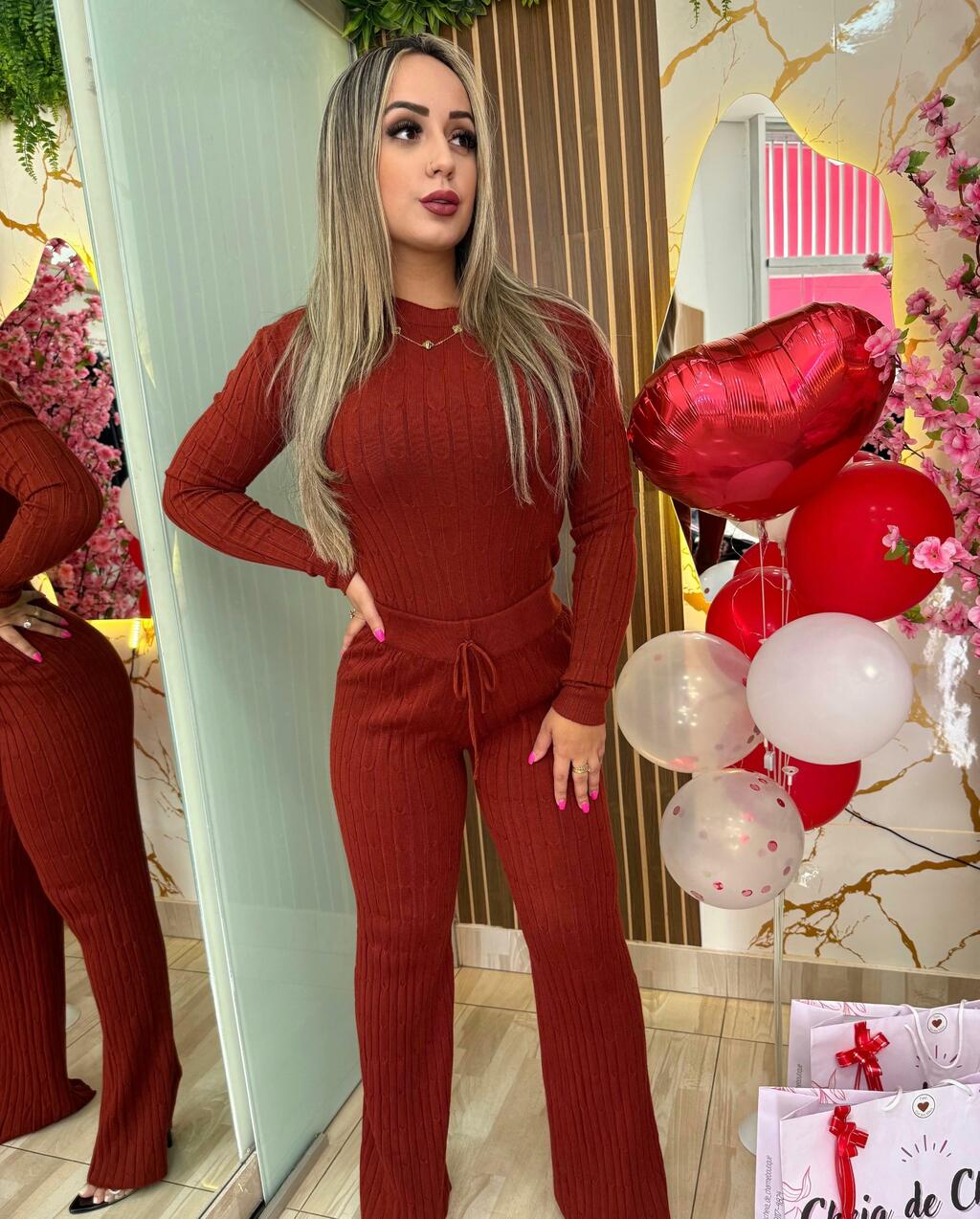Conjunto todo em tricot modal, linha premium terra cota, super confortável.